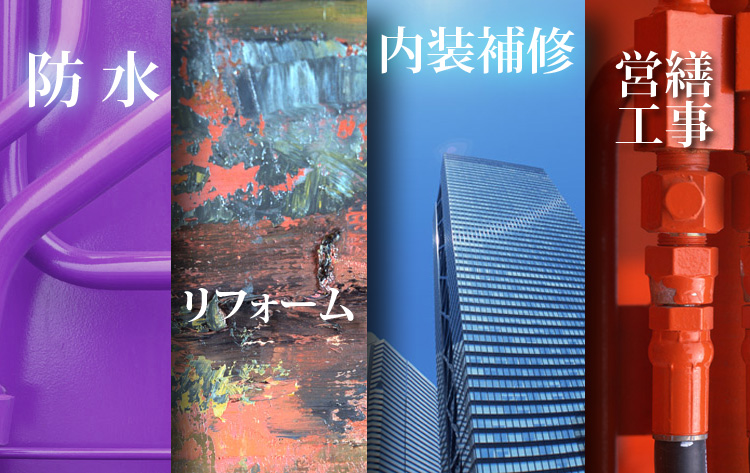 | ●防 水 工 事 | ビルの防水工事は、優れた施工技術により、より耐久性に優れた防水処理を施工します。 | |